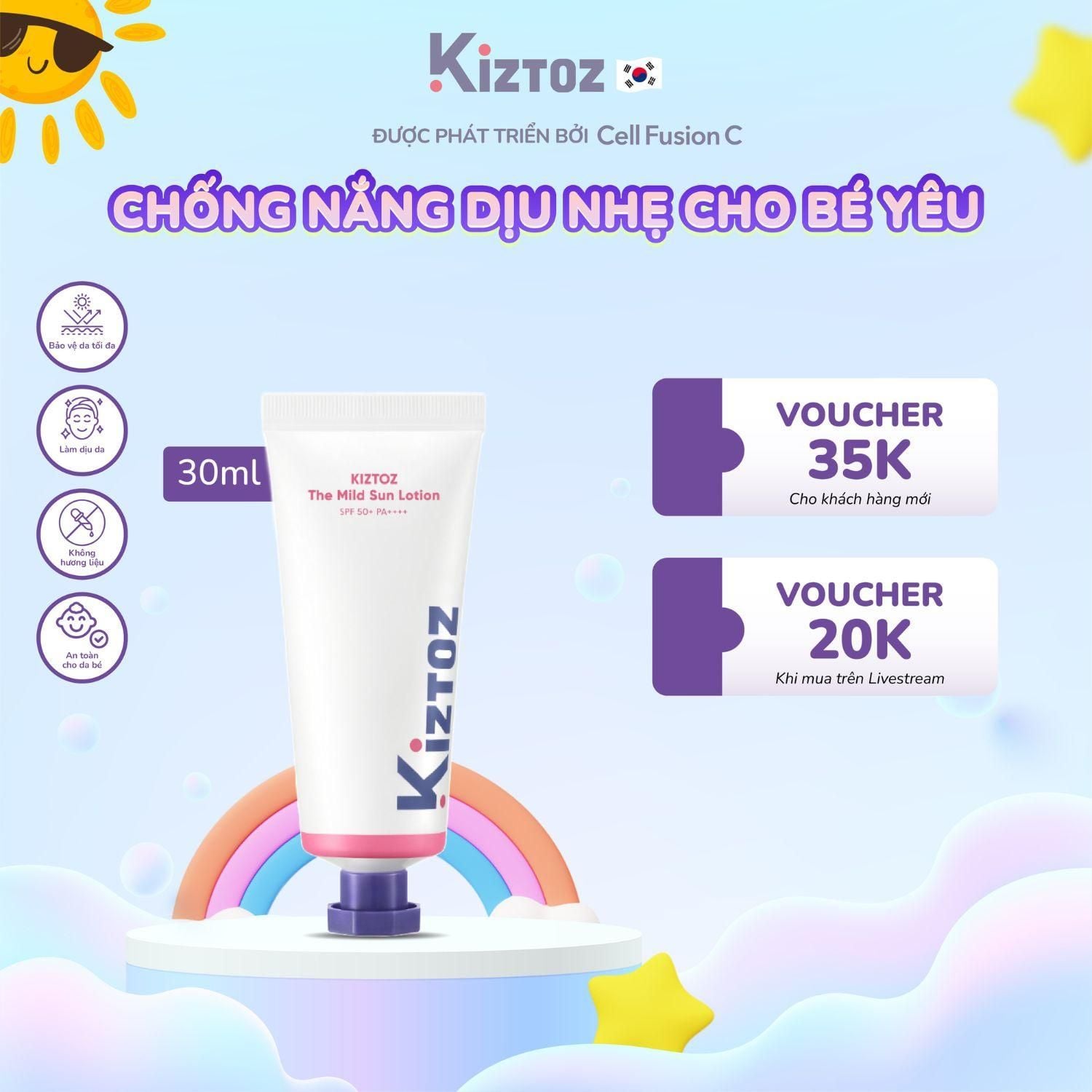 Mã sản phẩm: Mild Sun Lotion 30ml Tình trạng: Còn hàng Thương hiệu: Kiztoz