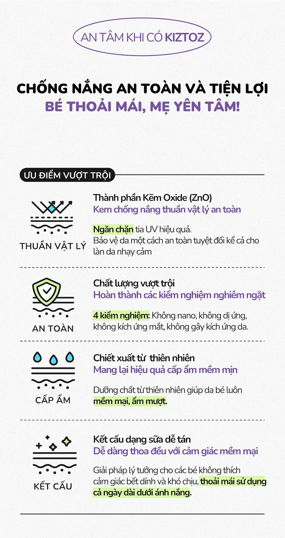 [30ml] Kem Chống Nắng Thuần Vật Lý Làm Dịu Da Dành Cho Trẻ Sơ Sinh Kiztoz The Mild Sun Lotion SPF 50+ PA++++