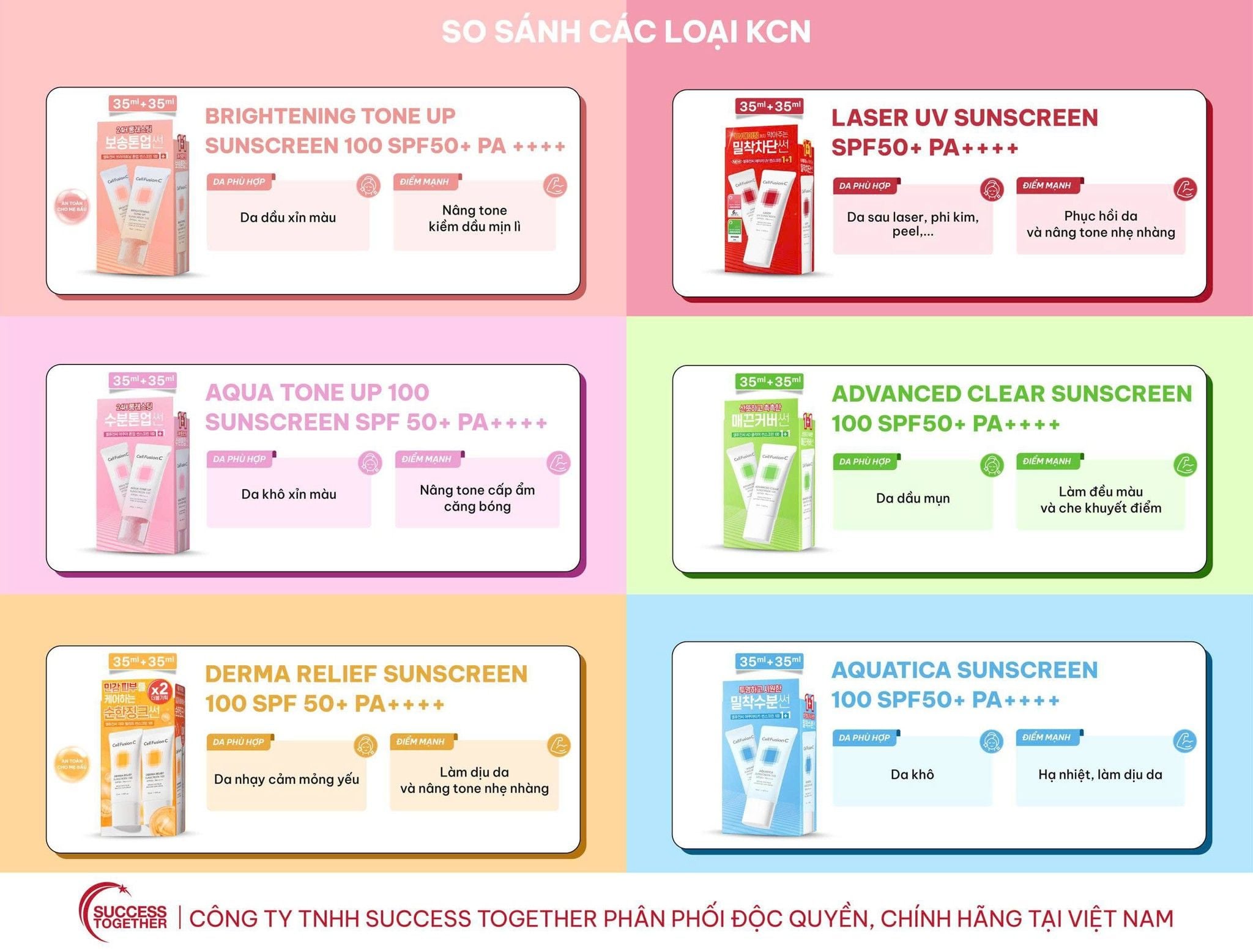 [Cell Fusion C x Gia Đình Ngọc Thuận] Bộ Sưu Tập Kem Chống Nắng Nâng Tone / Da Dầu Mụn / Da Khô / Mẹ Bầu / Sau Laser SPF 50+ PA++++