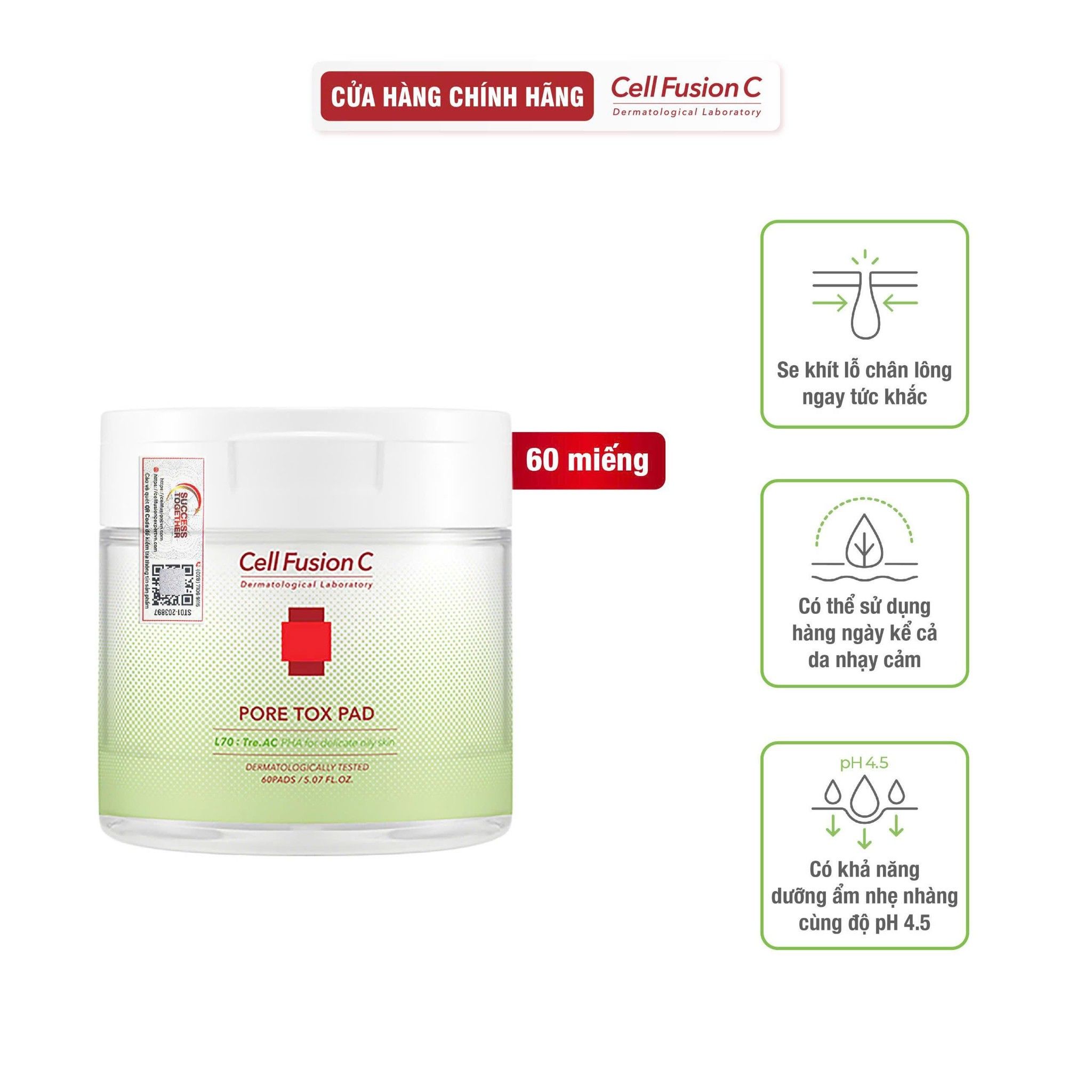 [Cell Fusion C x Võ Hà Linh] Toner Pad Hỗ Trợ Làm Sạch & Thu Nhỏ Lỗ Chân Lông Chứa PHA Cell Fusion C Pore Tox Pad (60 miếng)
