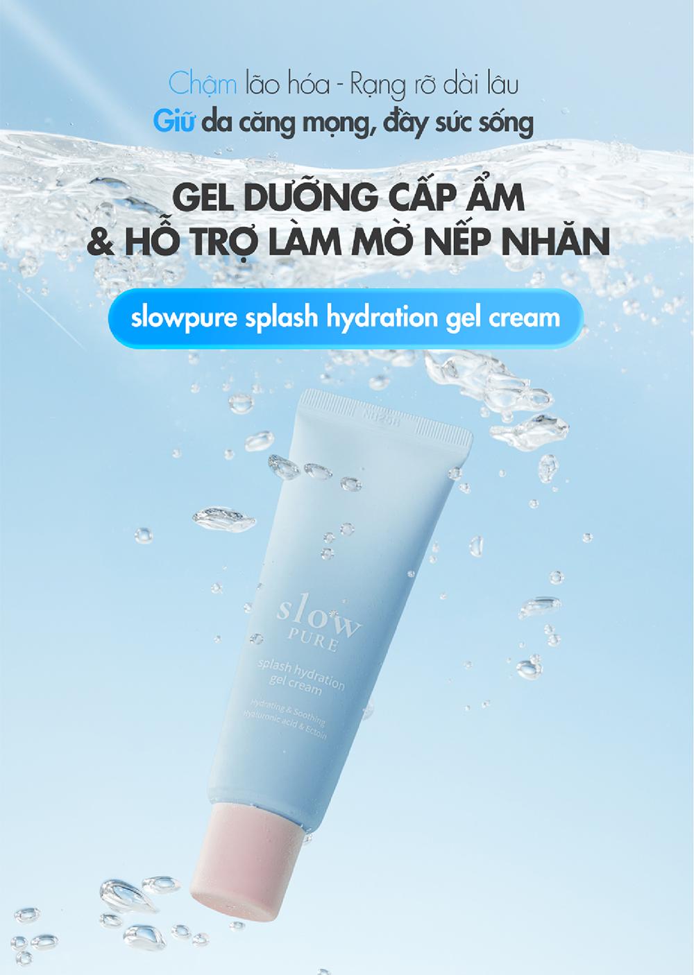 Gel Dưỡng Cấp Ẩm Hạ Nhiệt Làm Dịu & Hỗ Trợ Làm Mờ Nếp Nhăn Slowpure Splash Hydration Gel Cream 50ML