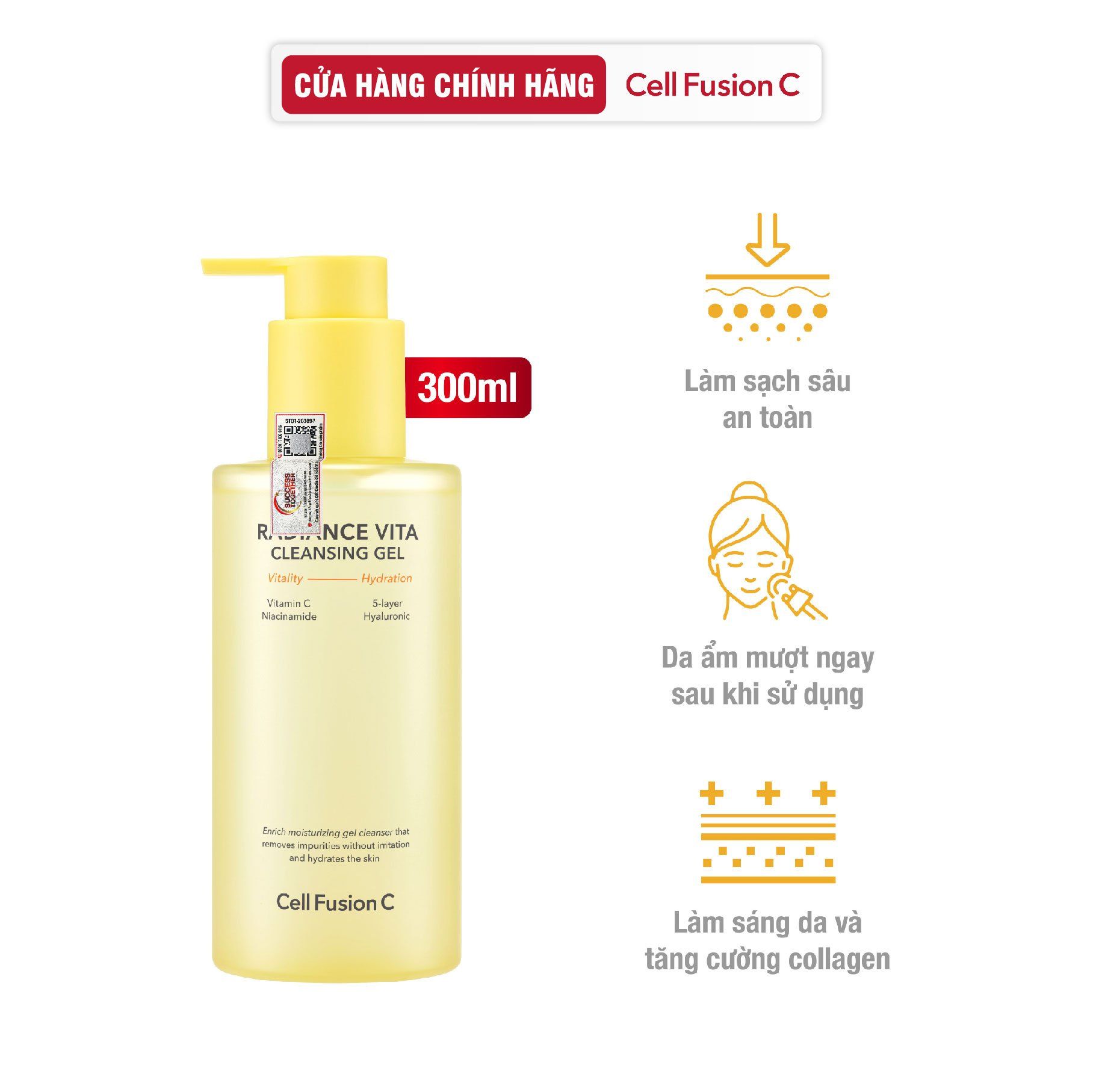 Gel Rửa Mặt Làm Sáng & Dưỡng Ẩm Da Cell Fusion C Radiance Vita Cleansing Gel