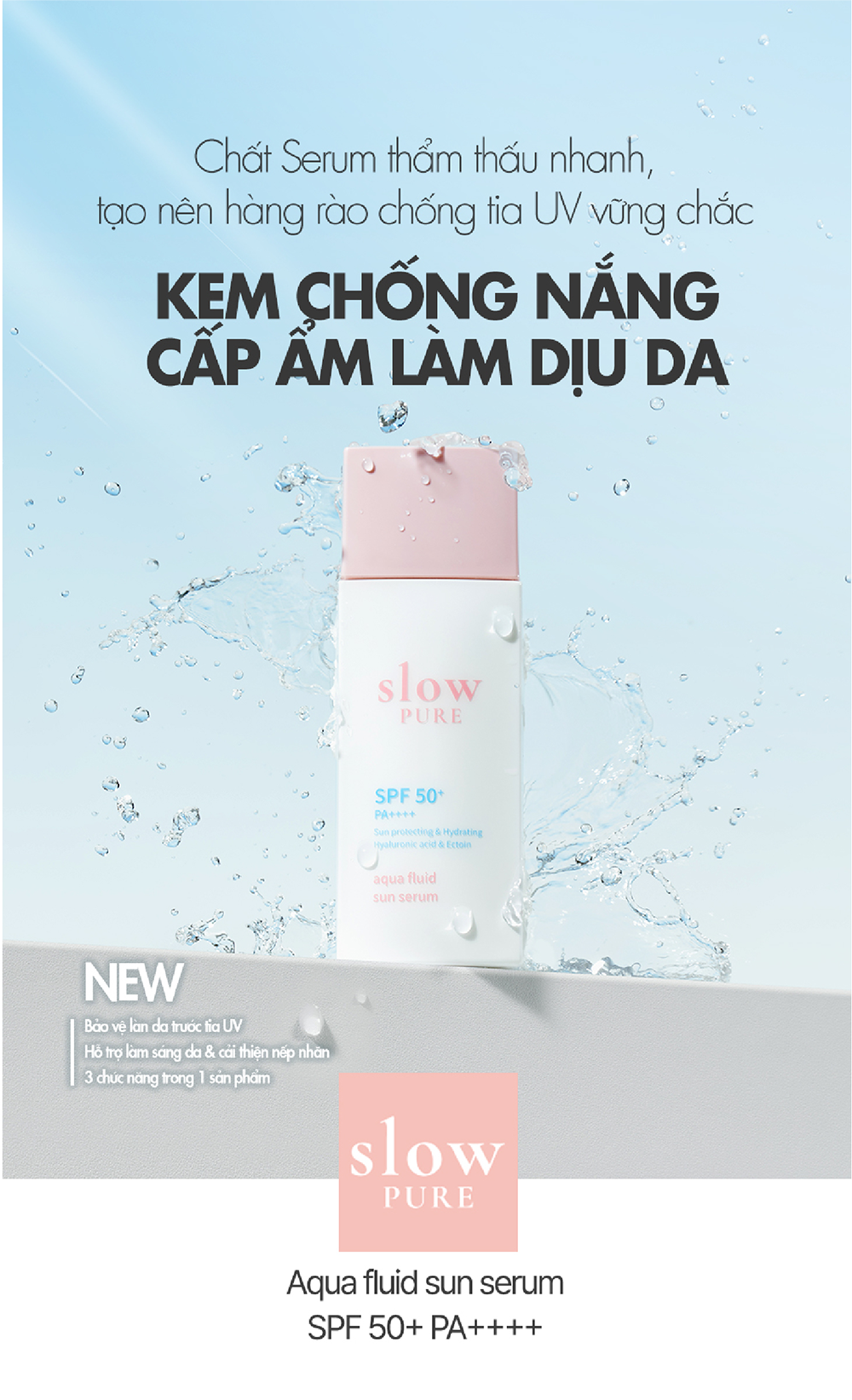 Kem Chống Nắng Cấp Ẩm Làm Dịu Da Slowpure Aqua Fluid Sun Serum SPF50+ PA++++ 50ML