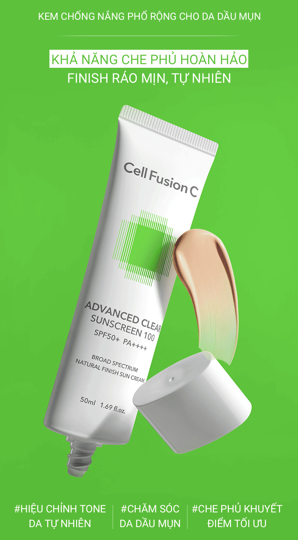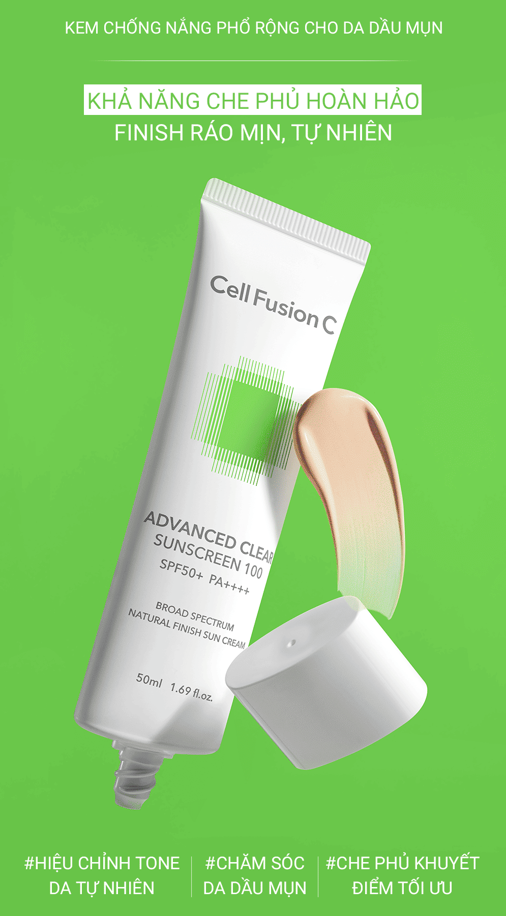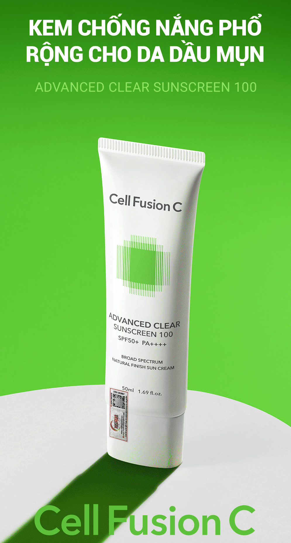 Kem Chống Nắng Phổ Rộng Kiểm Soát Dầu Mụn Cell Fusion C Advanced Clear Sunscreen 100 SPF50+ PA++++