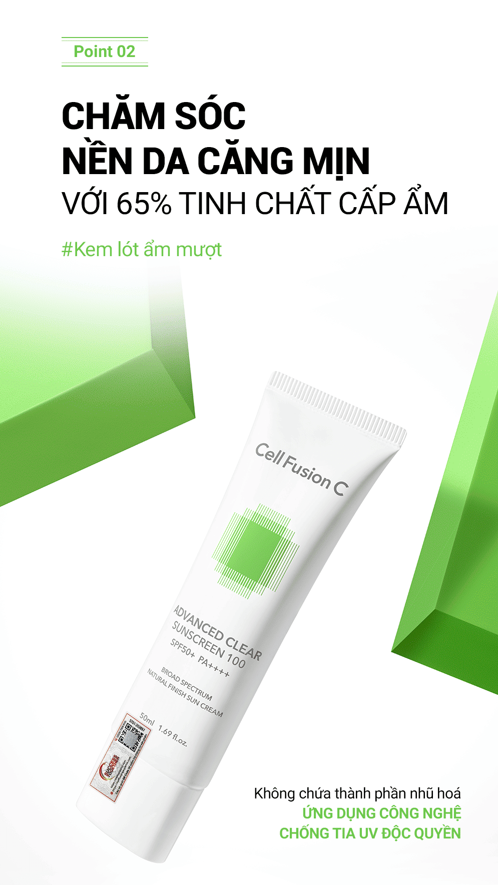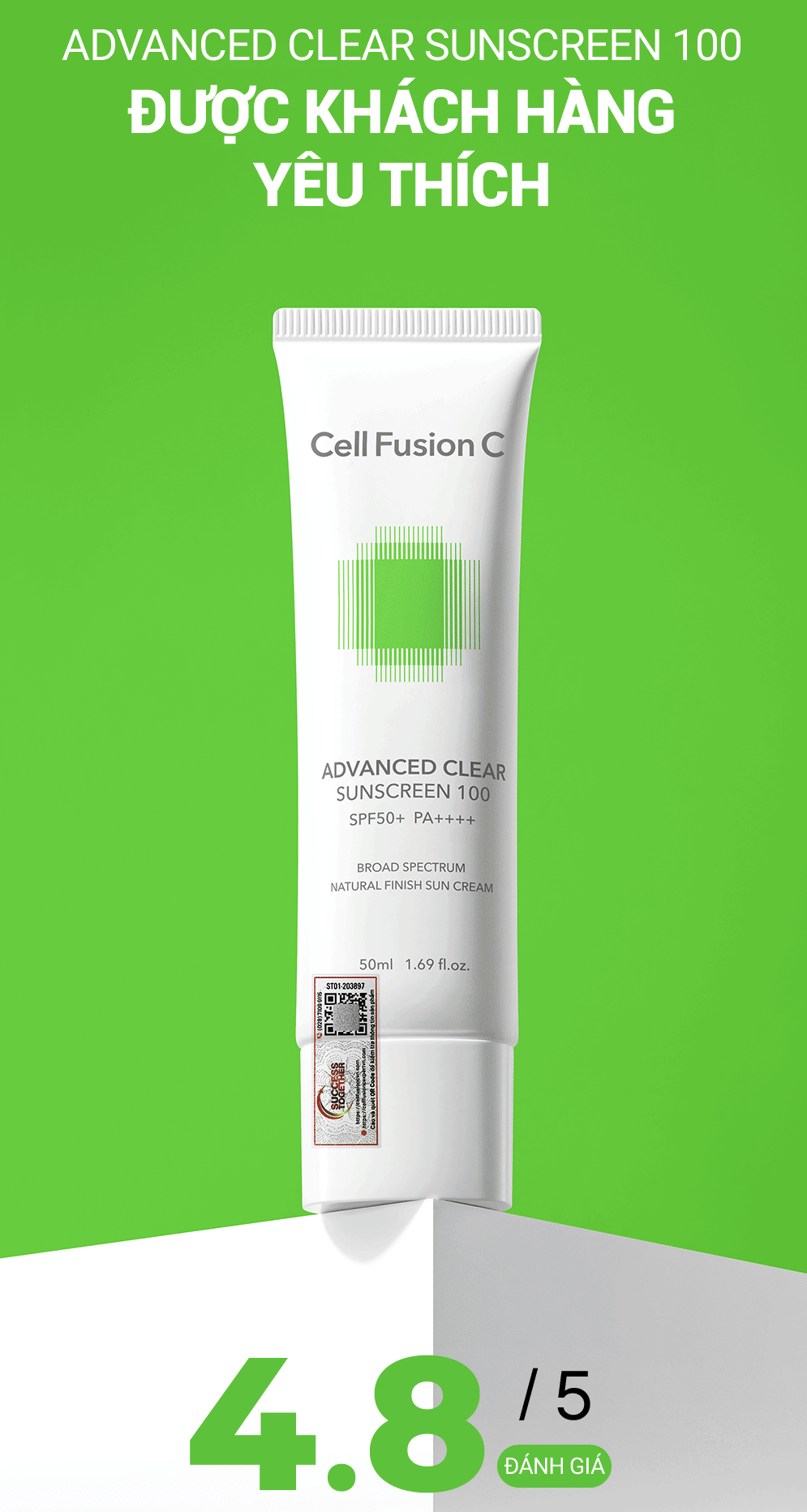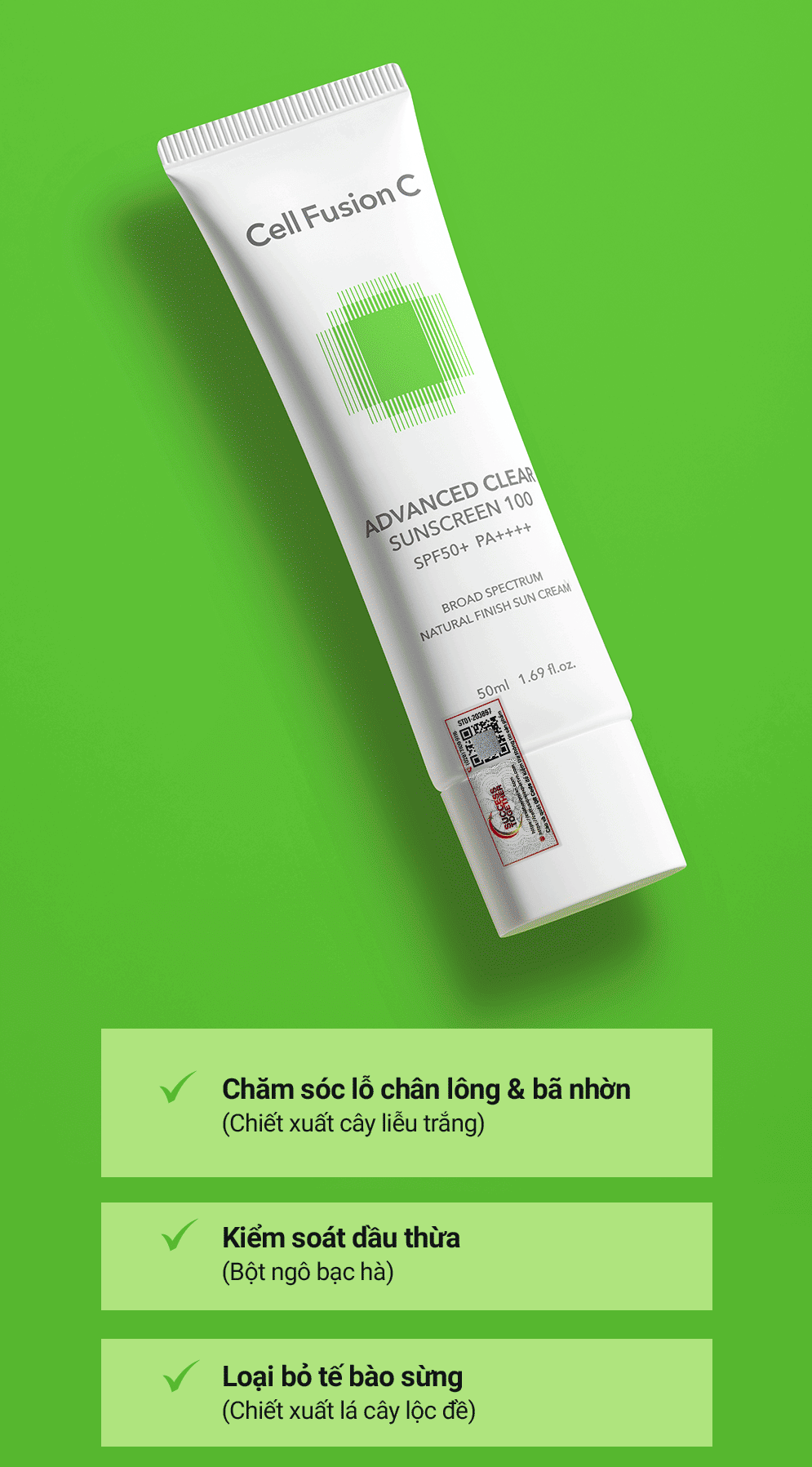 Kem Chống Nắng Phổ Rộng Kiểm Soát Dầu Mụn Cell Fusion C Advanced Clear Sunscreen 100 SPF50+ PA++++
