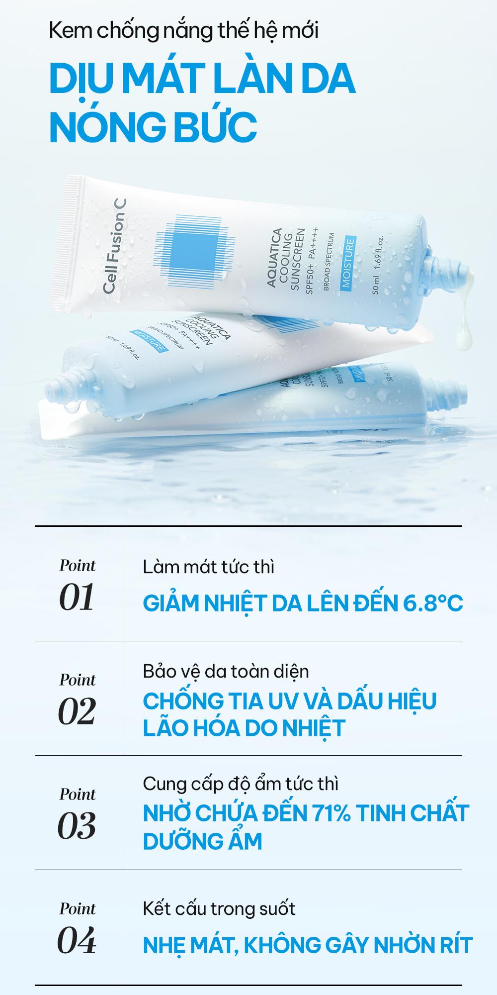 Kem Chống Nắng Hạ Nhiệt Cấp Ẩm & Làm Dịu Da Khô Cell Fusion C Aquatica Cooling Sunscreen 100 SPF50+ PA++++