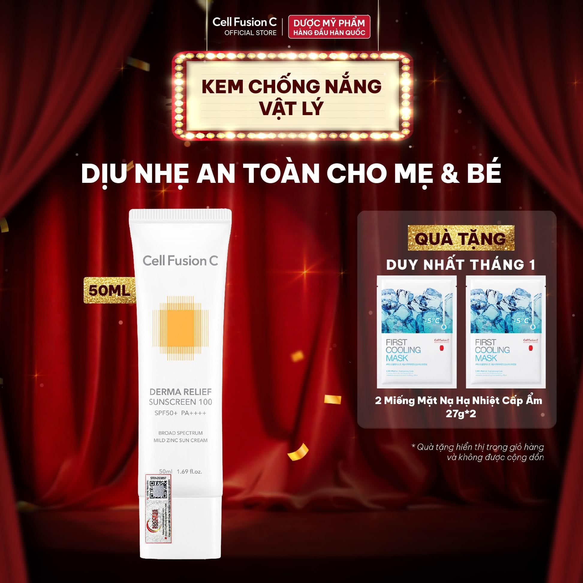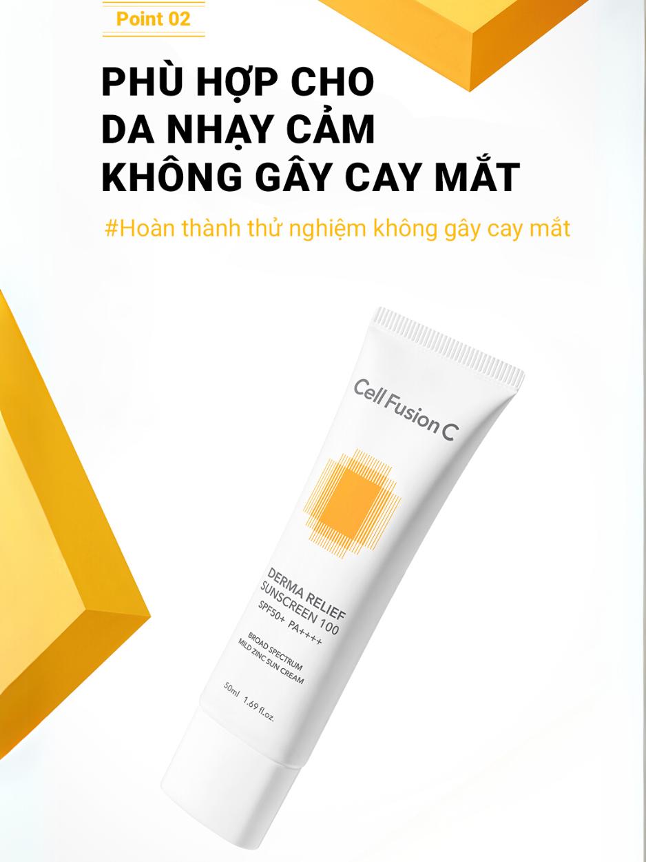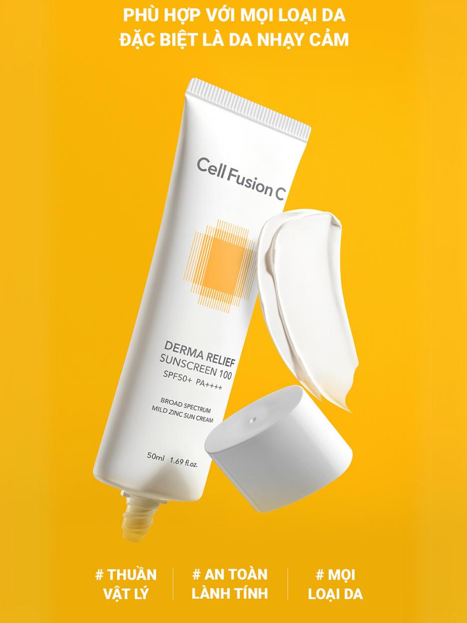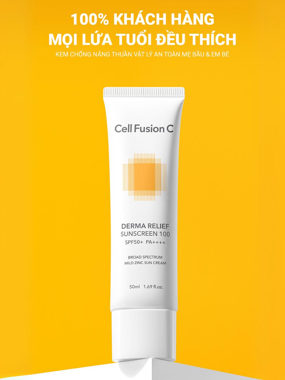 Kem Chống Nắng Thuần Vật Lý Cho Da Nhạy Cảm & Mẹ Bầu Cell Fusion C Derma Relief Sunscreen 100 SPF 50+/PA++++