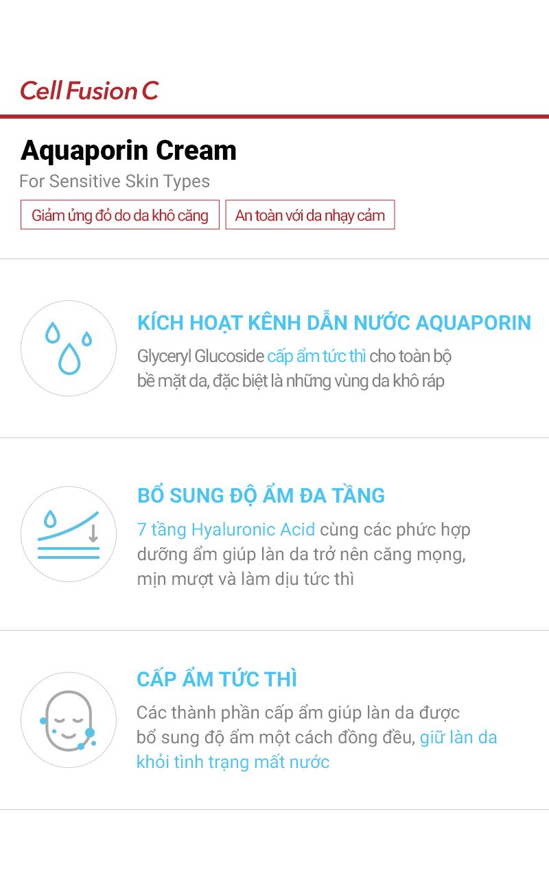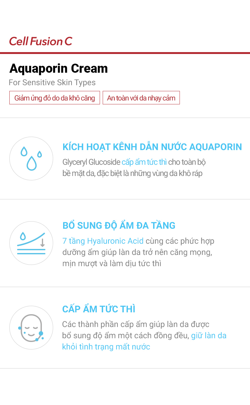 Kem Dưỡng Cấp Ẩm Làm Dịu Da & Kích Hoạt Kênh Dẫn Nước Cell Fusion C Aquaporin Cream
