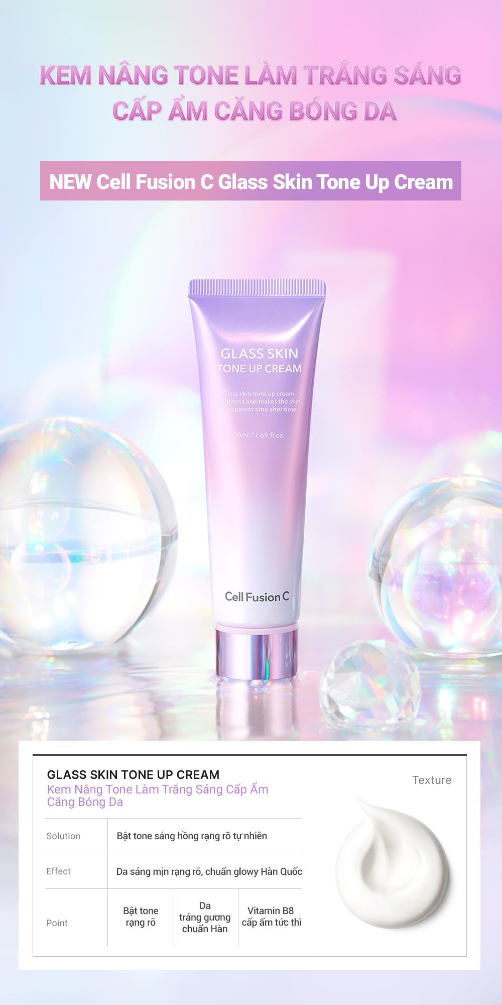 Kem Nâng Tone Làm Trắng Sáng Cấp Ẩm Căng Bóng Da Cell Fusion C Glass Skin Tone Up Cream 50ML