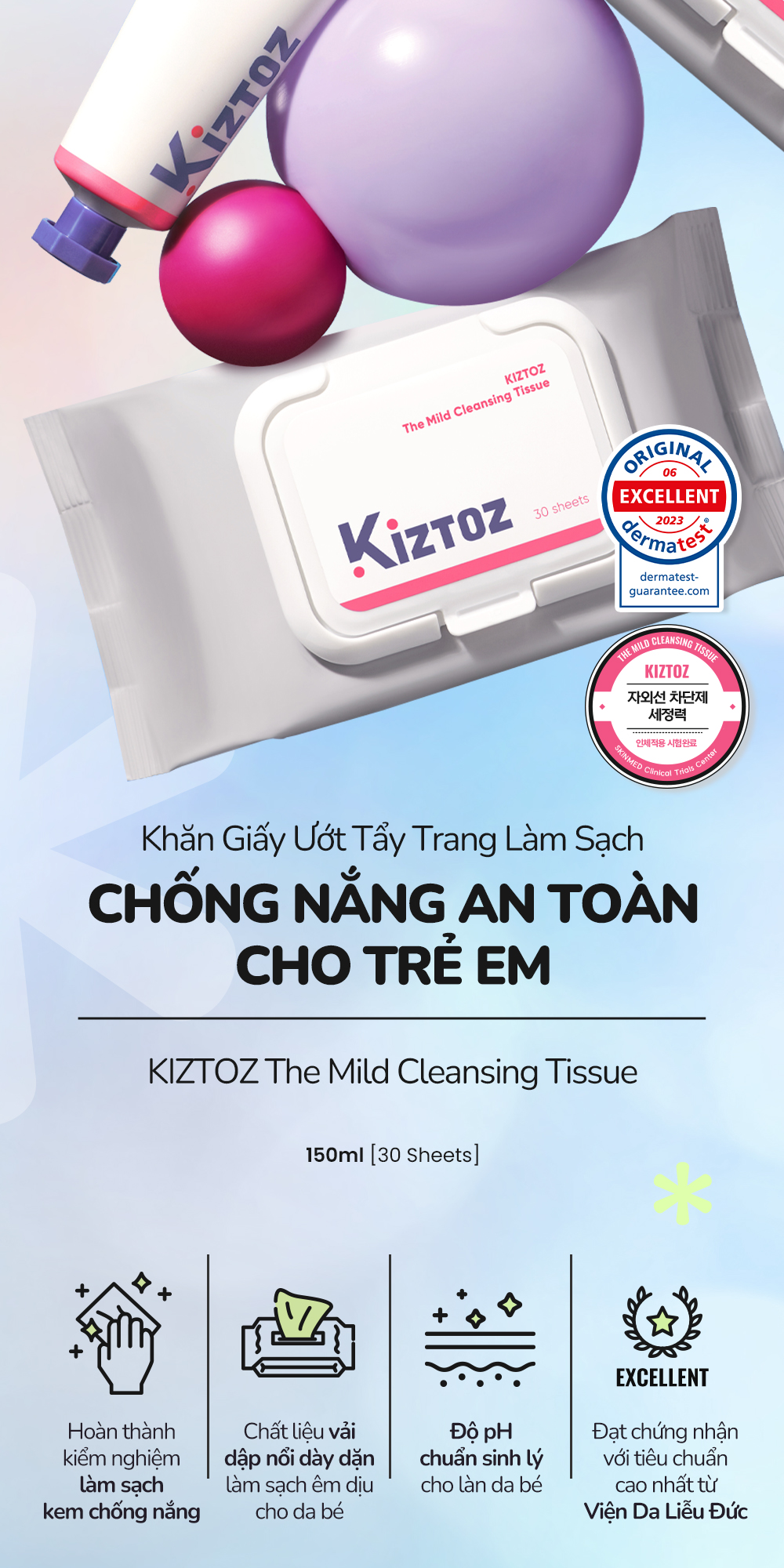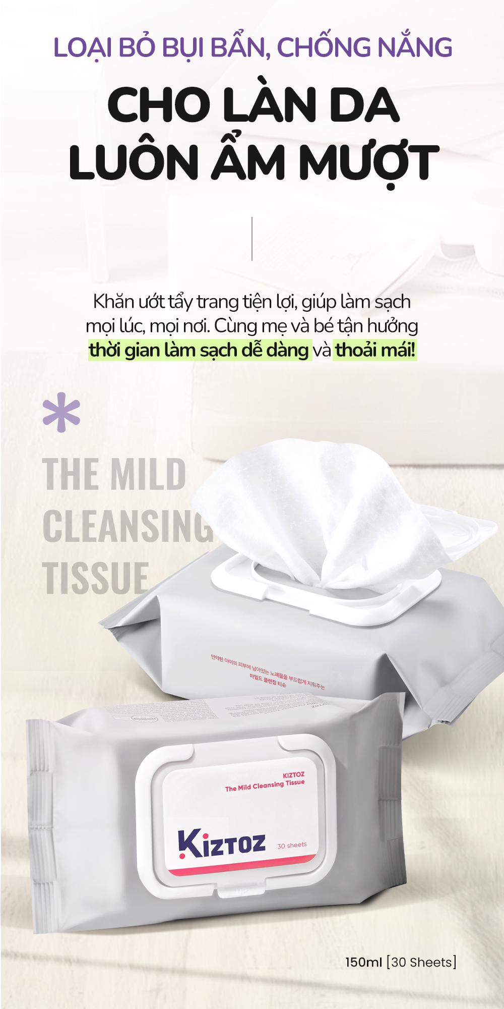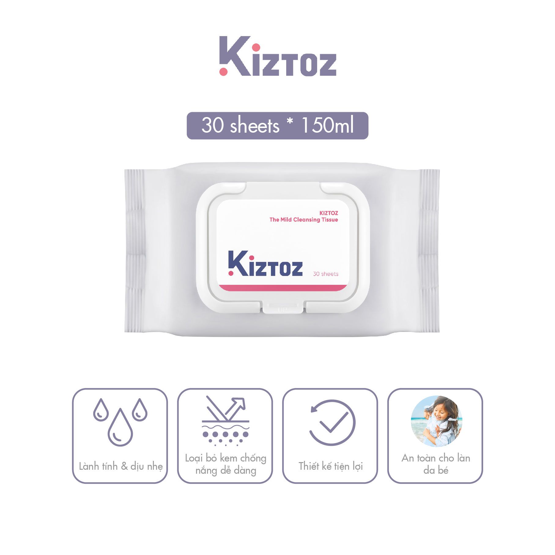 Khăn Giấy Ướt Tẩy Trang Làm Sạch Chống Nắng An Toàn Cho Trẻ Sơ Sinh Kiztoz The Mild Cleansing Tissue 30 sheets * 150ml