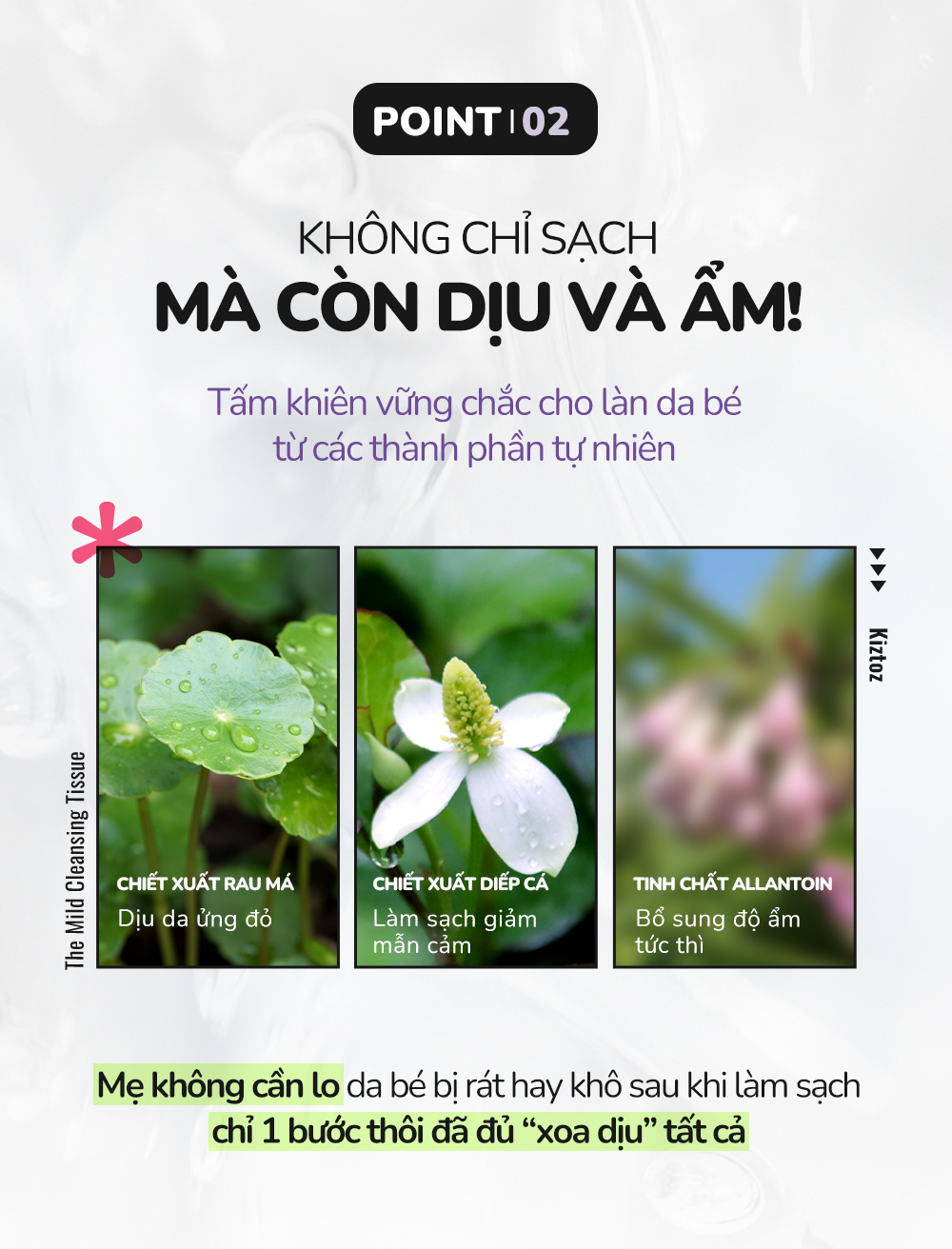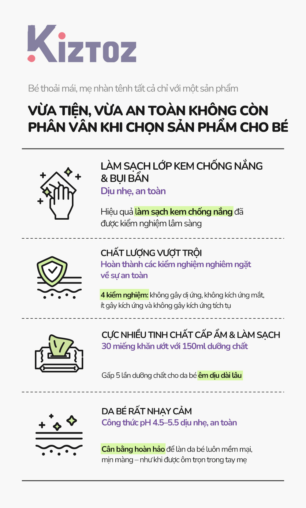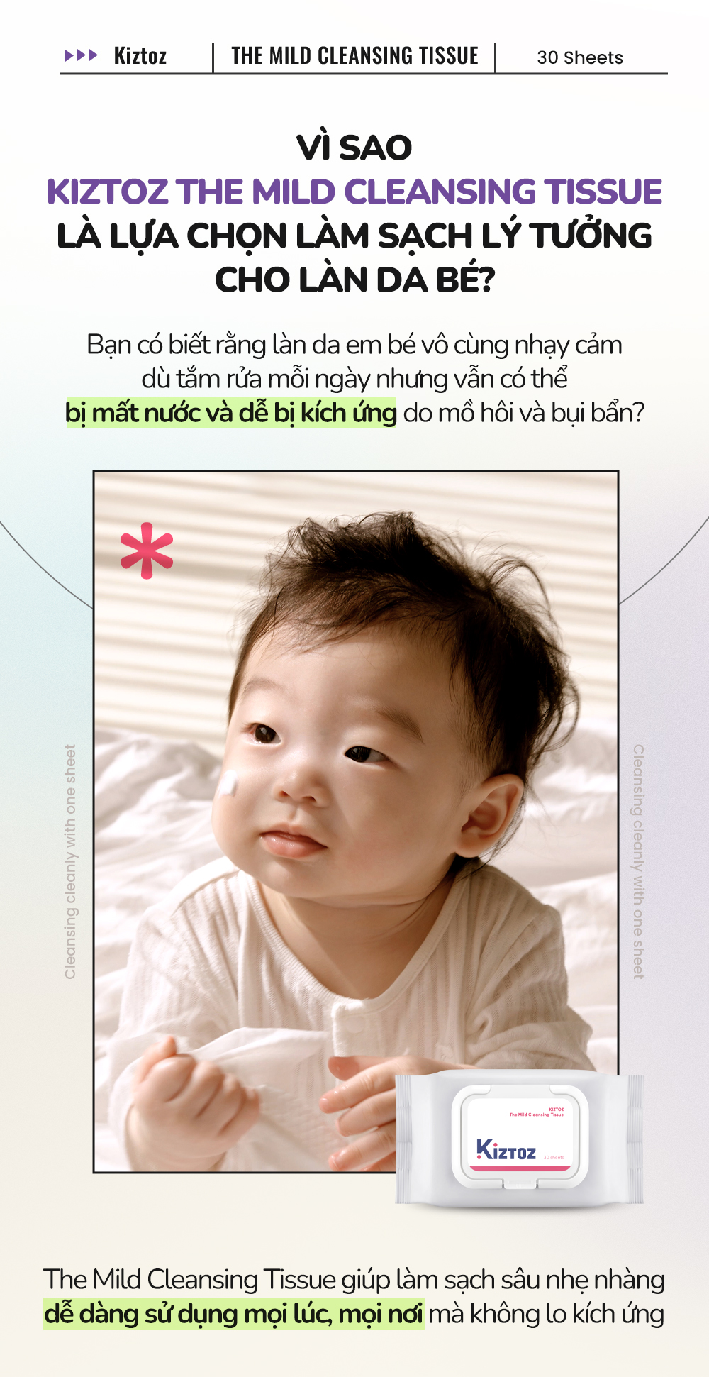 Khăn Giấy Ướt Tẩy Trang Làm Sạch Chống Nắng An Toàn Cho Trẻ Sơ Sinh Kiztoz The Mild Cleansing Tissue 30 sheets * 150ml
