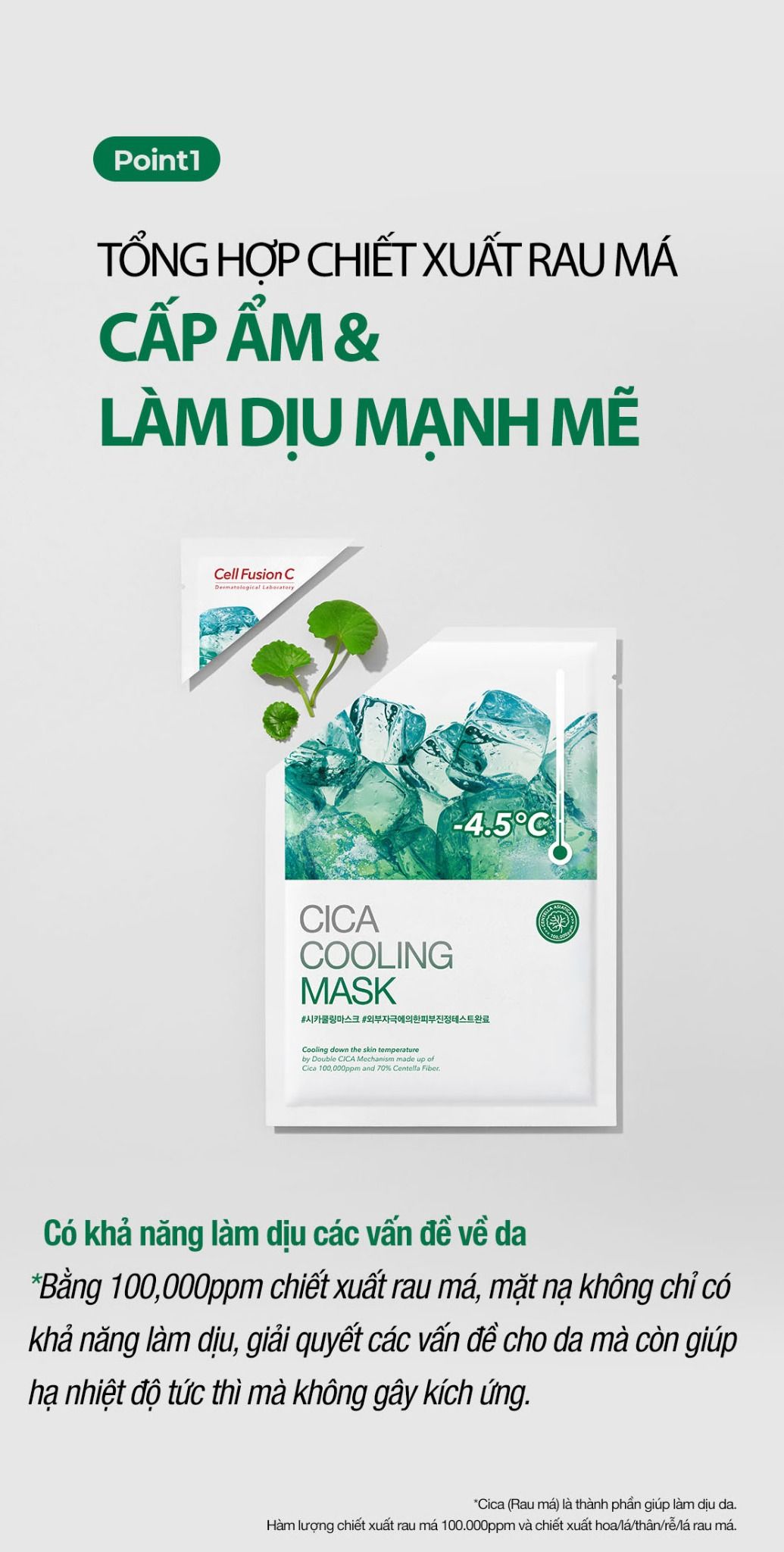 Mặt Nạ Rau Má Hạ Nhiệt -4.5 Độ Giảm Mụn & Làm Dịu Da Ửng Đỏ Cháy Nắng Cell Fusion C Cica Cooling Mask
