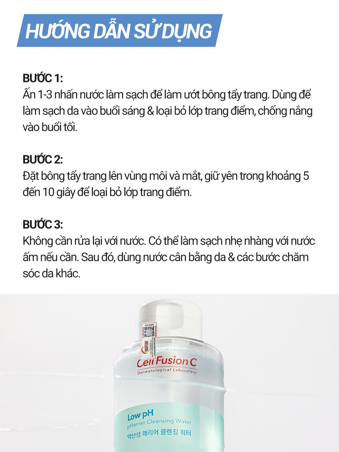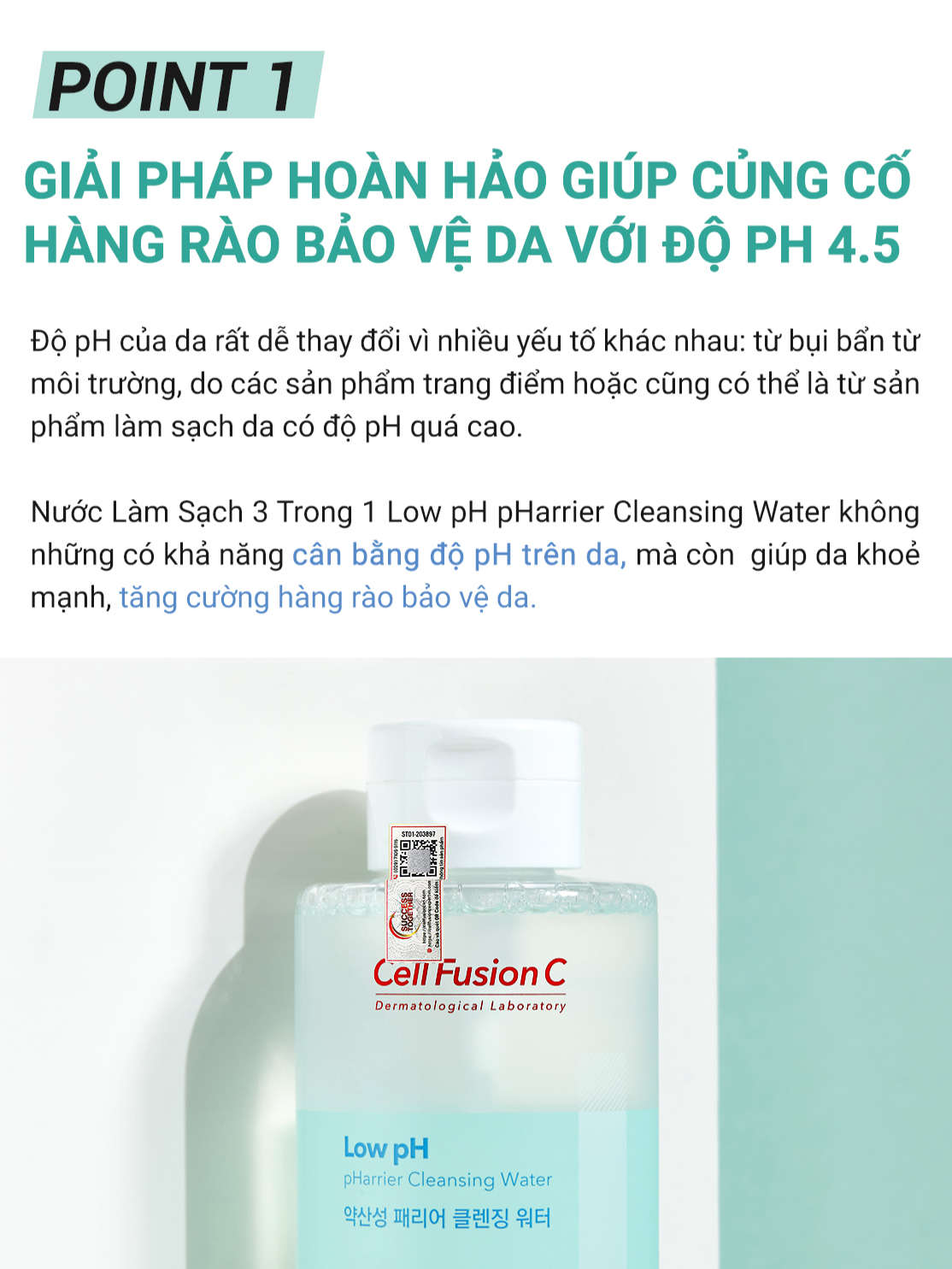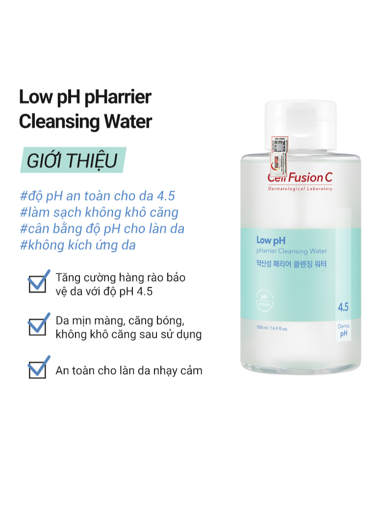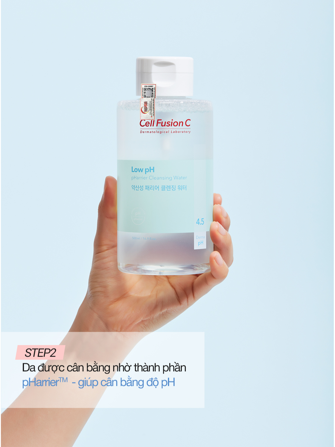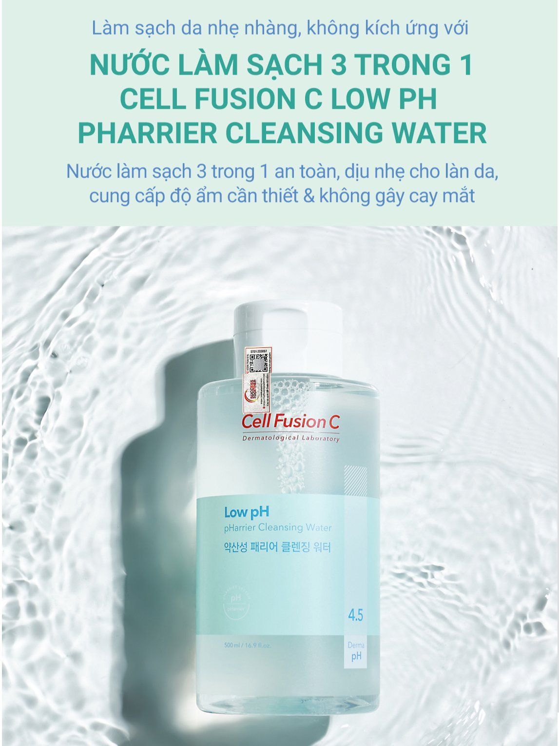 Nước Tẩy Trang Rửa Mặt Cấp Ẩm Cân Bằng độ pH Trên Da Cell Fusion C Low pH Pharrier Cleansing Water