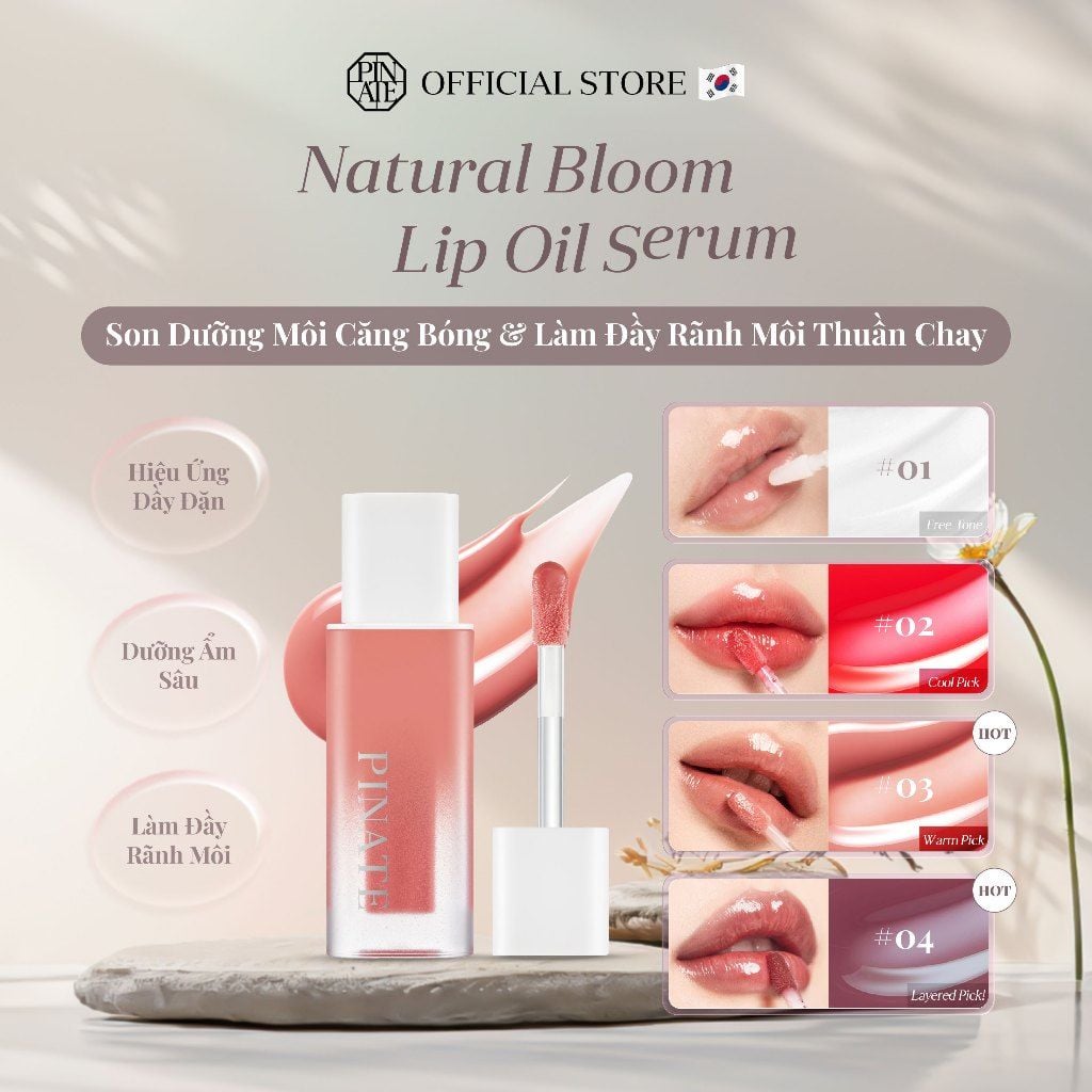 Son Dưỡng Môi Căng Bóng & Làm Đầy Rãnh Môi Thuần Chay Pinate Natural Bloom Lip Oil Serum 4.3ml