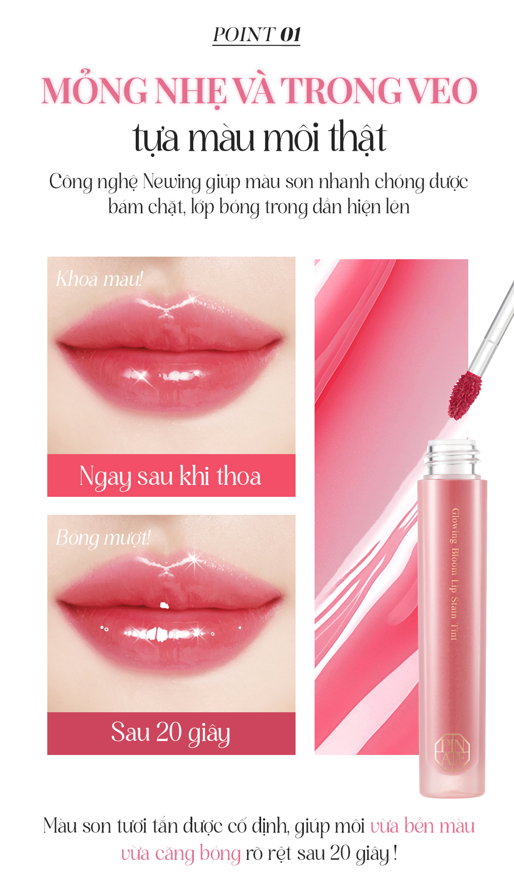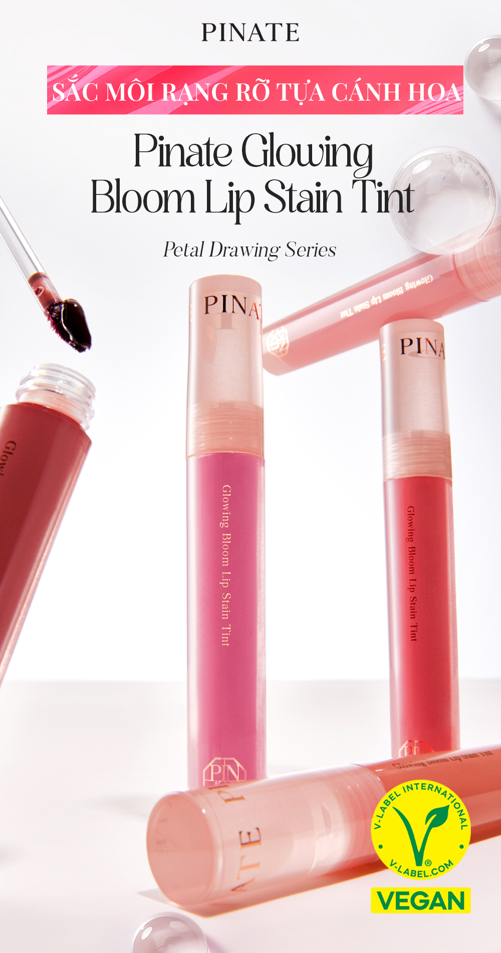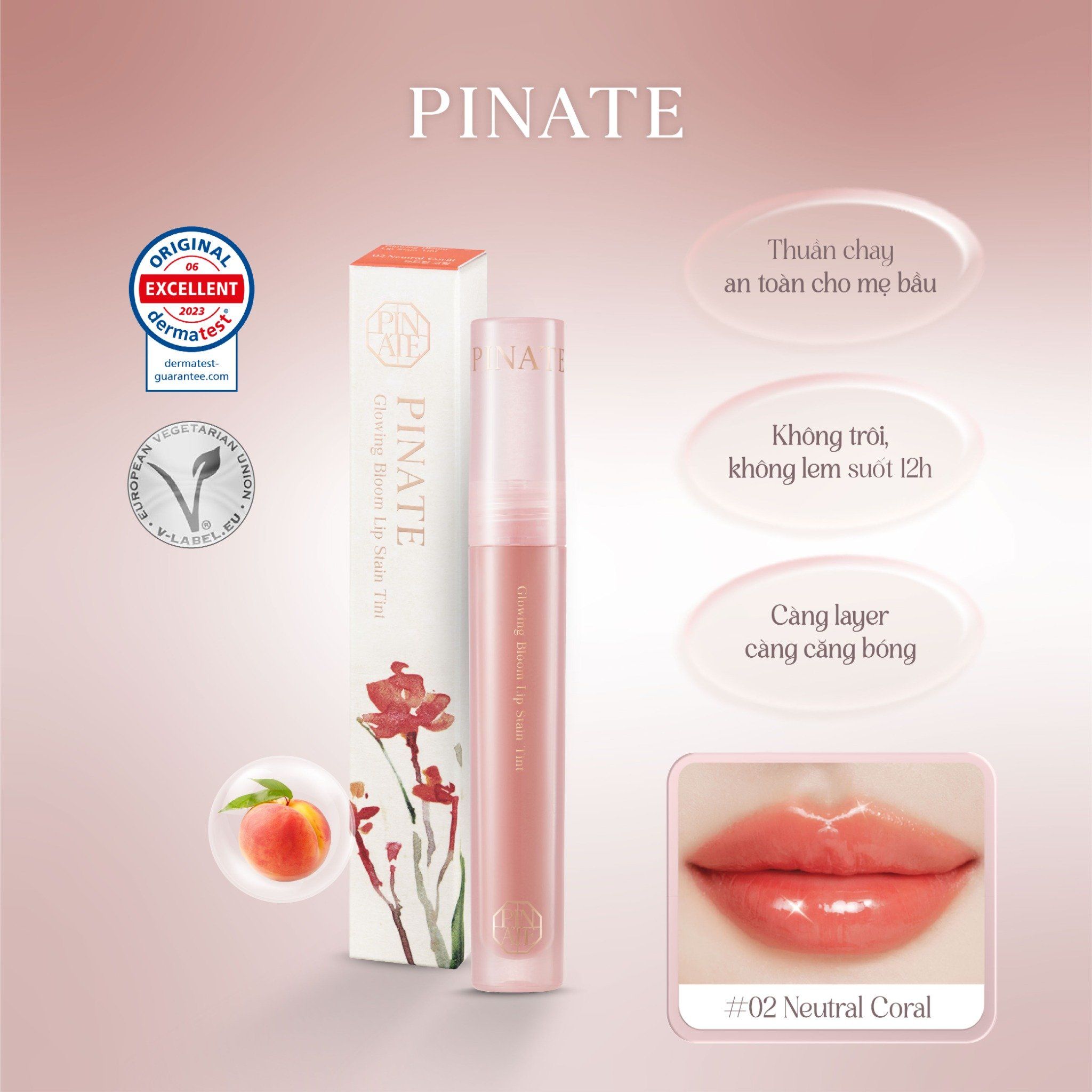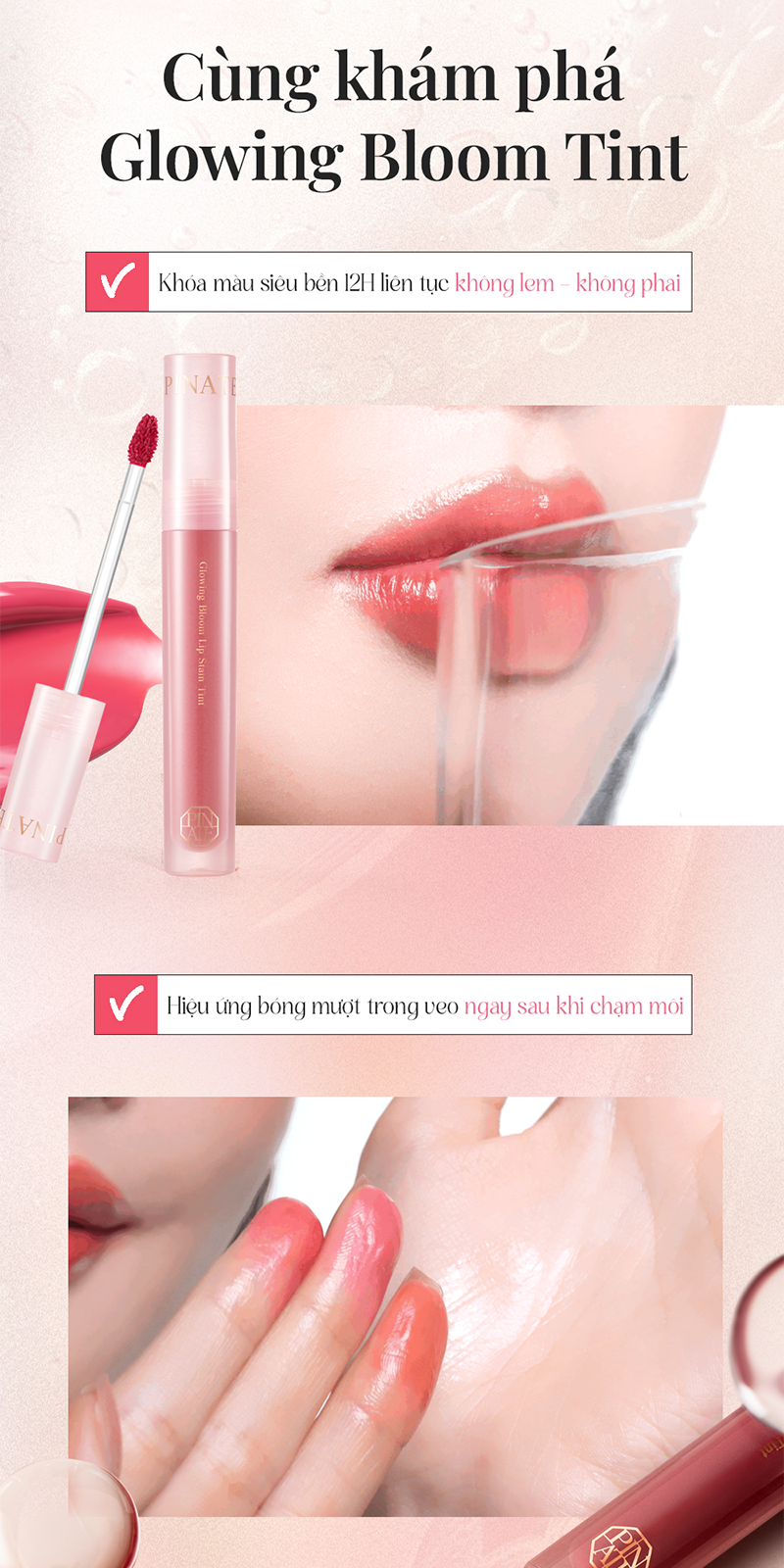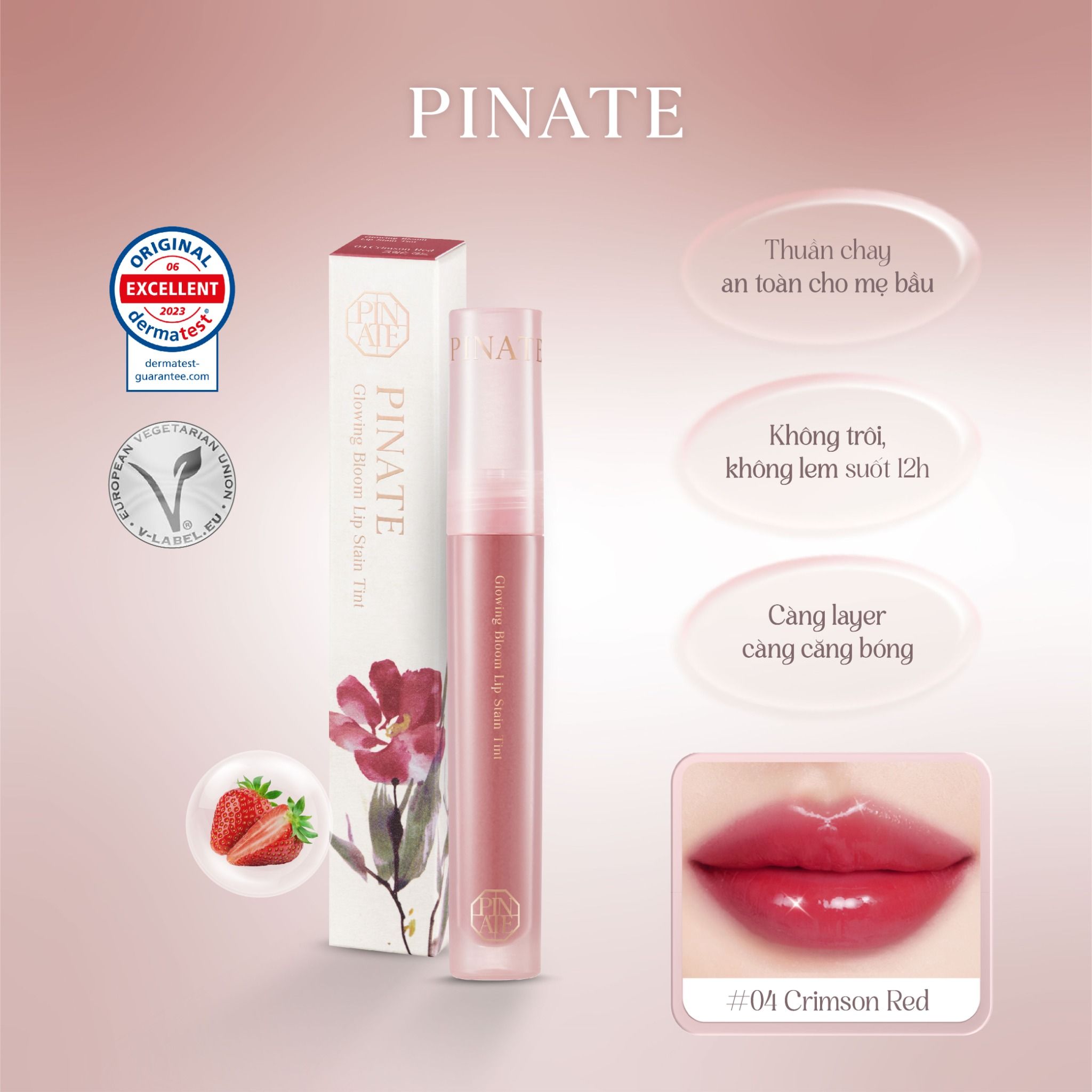 Son Tint Bóng Dưỡng Môi Thuần Chay Bền Màu Pinate Glowing Bloom Lip Stain Tint 2.9G