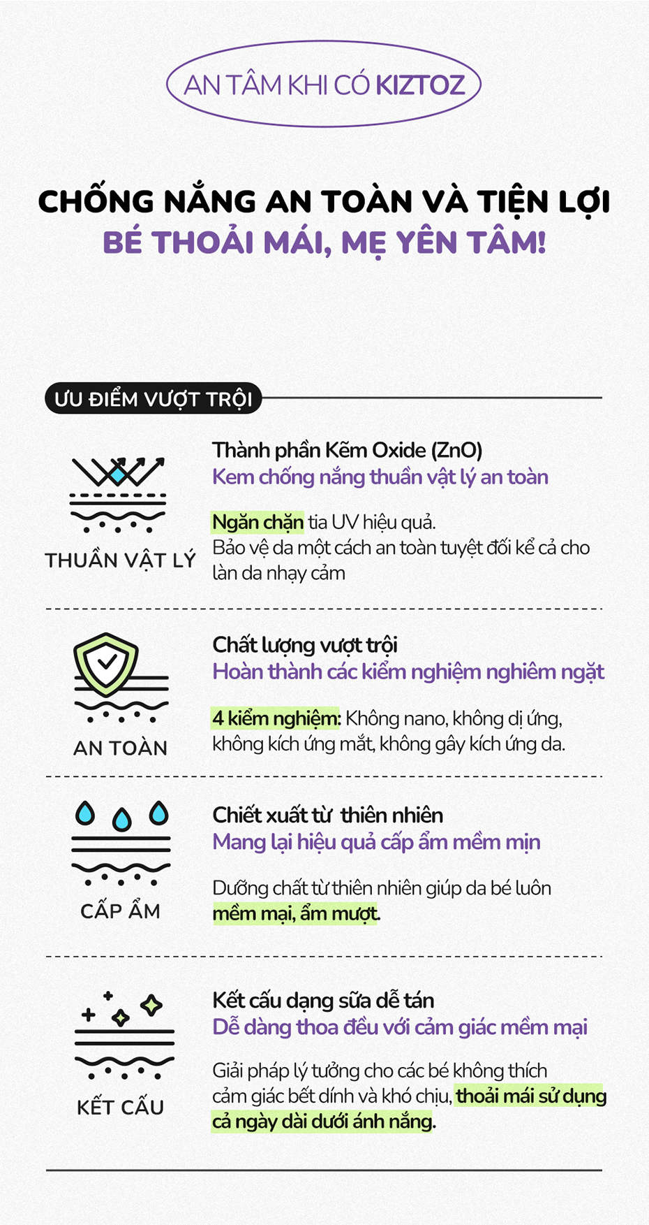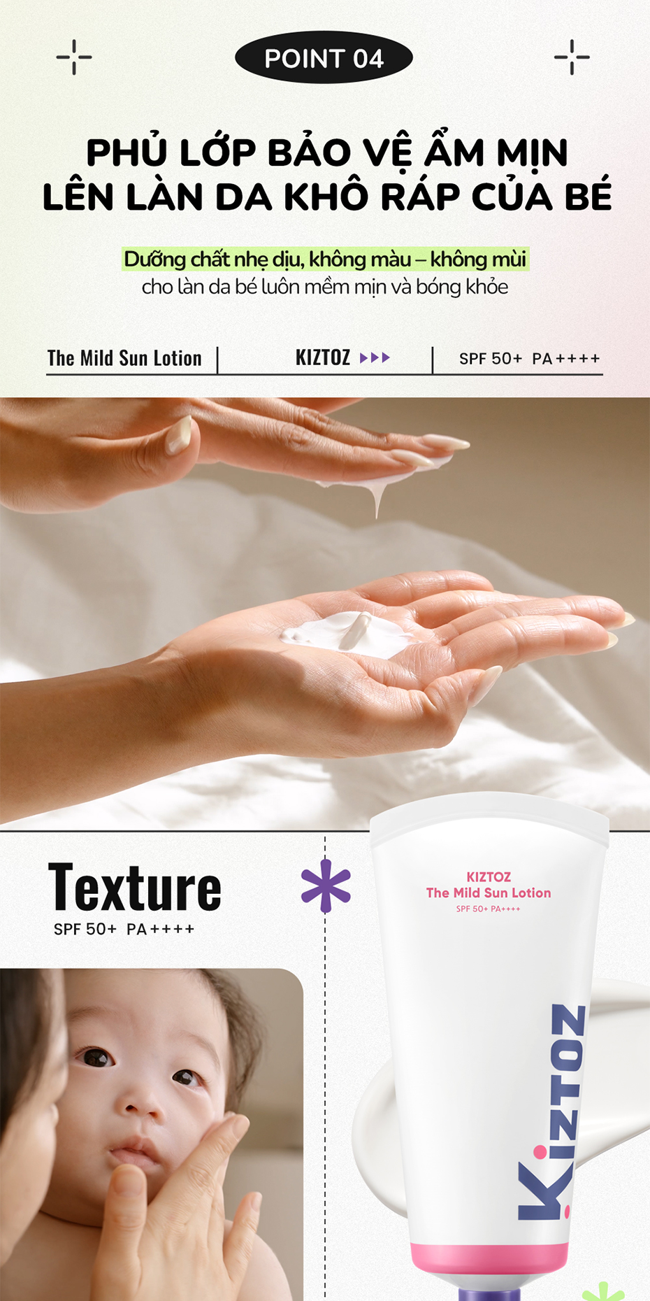 Kem Chống Nắng Thuần Vật Lý Làm Dịu Da Dành Cho Trẻ Sơ Sinh Kiztoz The Mild Sun Lotion SPF 50+ PA++++ 80ml/ 30ml