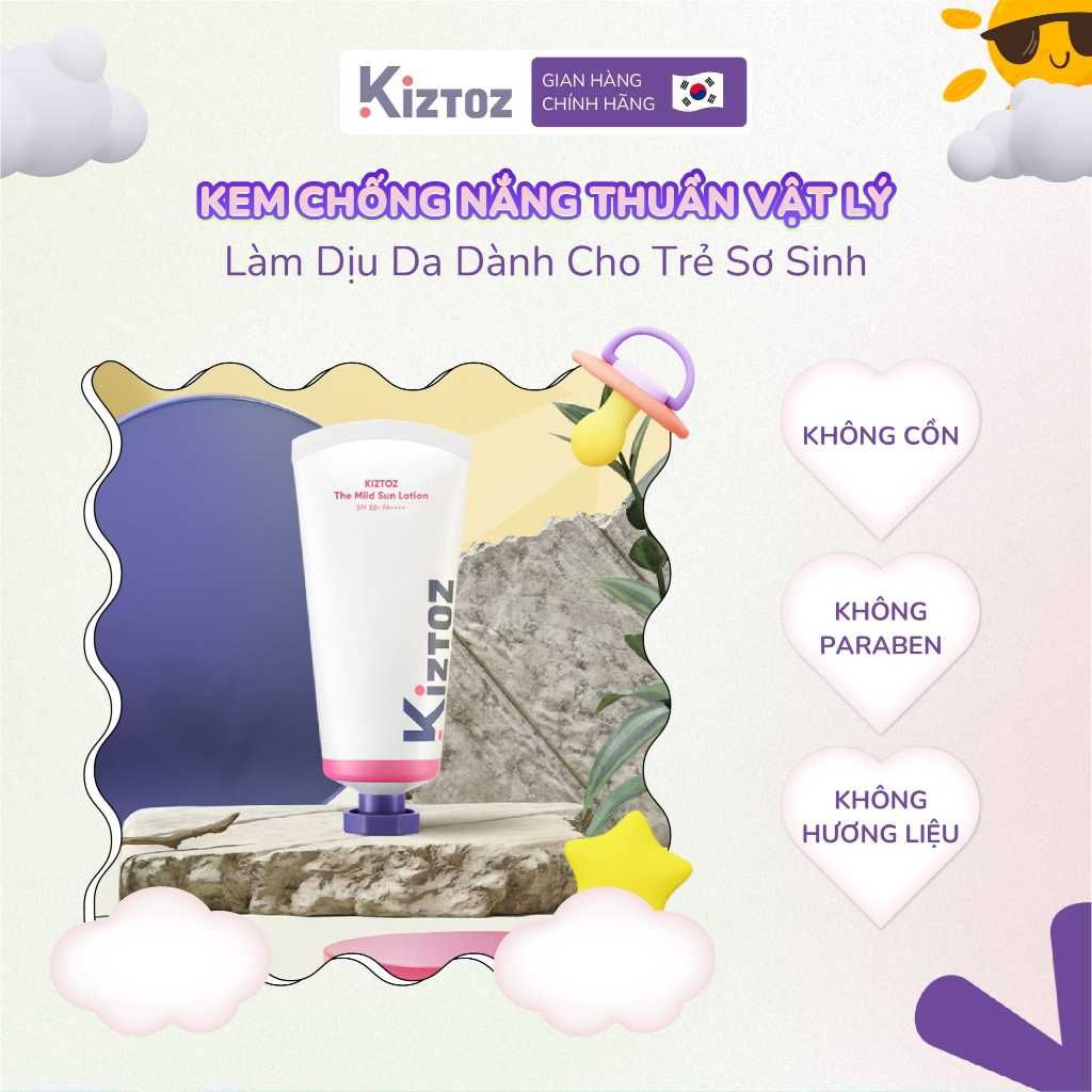 Sữa Chống Nắng Thuần Vật Lý Làm Dịu Da Dành Cho Trẻ Sơ Sinh Kiztoz The Mild Sun Lotion SPF 50+ PA++++