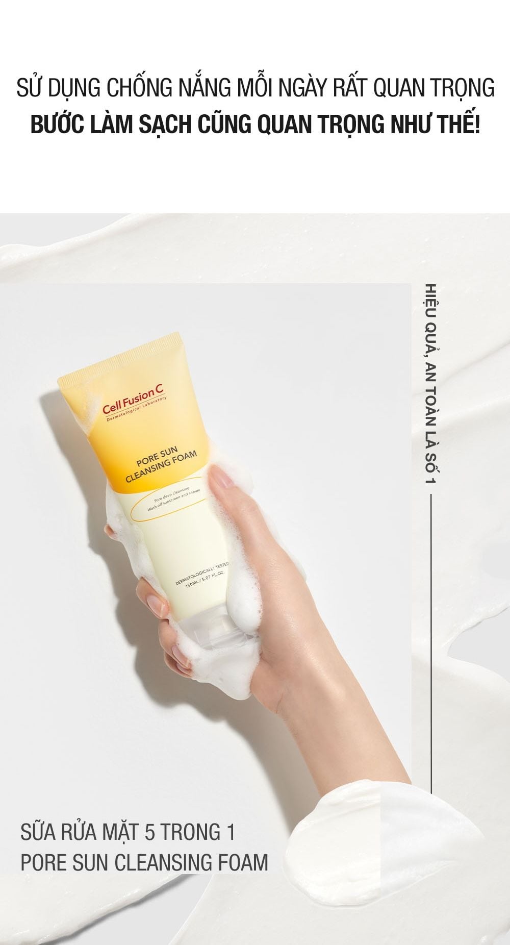 Sữa Rửa Mặt Làm Sạch Chống Nắng & Giảm Mụn Đầu Đen Bã Nhờn Cell Fusion C Pore Sun Cleansing Foam